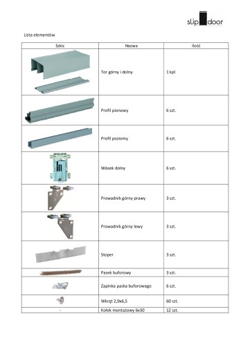 - Zestaw okuć na 3 drzwi przesuwnych do szyby / lustra 4 mm