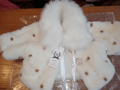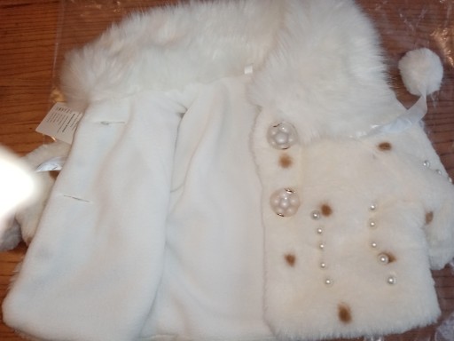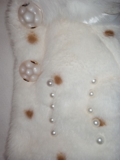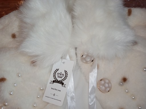 Kolor śmietankowy, zaś kolor futerka w kołnierzyku czysto biały.