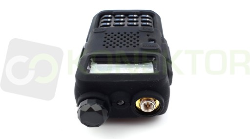 Z założonym pokrowcem można bez problemu odkręcać/wykręcać antenę i podłączać/odłączać słuchawkę i kabel do programowania PC.