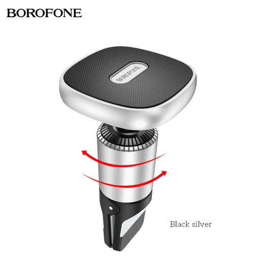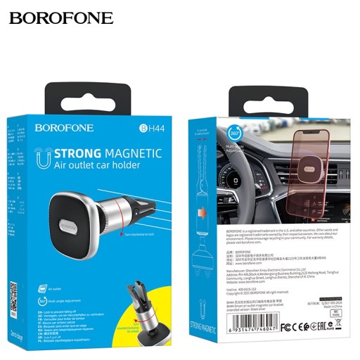 BOROFONE BH44 Smart to zwiększający bezpieczeństwo jazdy, mocny i stabilny, uchwyt magnetyczny na Twój telefon, wyposażony w duży, regulowany za pomocą 360 stopniowej rotacji magnes, mocowany do kratki wentylacyjnej pojazdu za pomocą silikonowego zacisku oraz posiadający dodatkowy, dokręcany na gwincie ścisk ramion umieszczonych w kratce pojazdu co powoduje maksymalnie mocne trzymanie uchwytu we właściwym położeniu i blokuje możliwość wypadnięcia uchwytu z miejsca montażu.