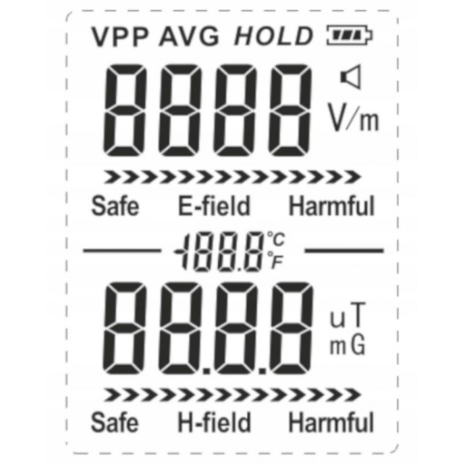 - Zakres: 1V/m-1999V/m (pole elektryczne) / 0.01μT-99.99μT (pole magnetyczne),