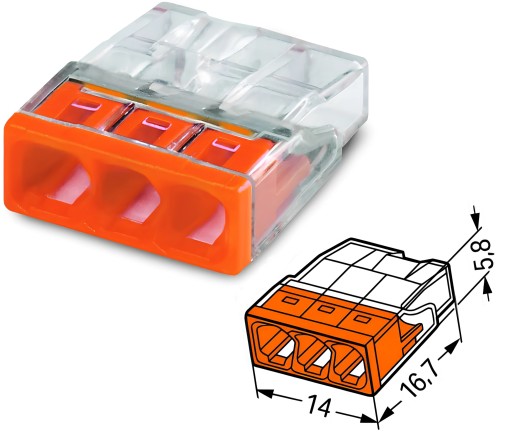 БЫСТРОСОЕДИНИТЕЛЬ WAGO ДЛЯ ПРОВОДА 3x0,5-2,5 мм² 100 шт.