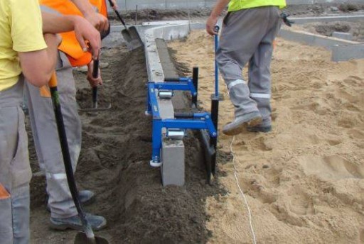 Służy do szalowania murku oporowego, wykonywanego przy układaniu krawężników lub obrzeży. Urządzenie posiada możliwość regulacji w poziomie i pionie wymiarów murku oporowego. Szalunek ślizgowy jest niezwykle przydatnym urządzeniem, które kilkakrotnie skraca czas pracy. Dzięki temu urządzeniu nie ma potrzeby koszty wykonywania tradycyjnego szalunku.