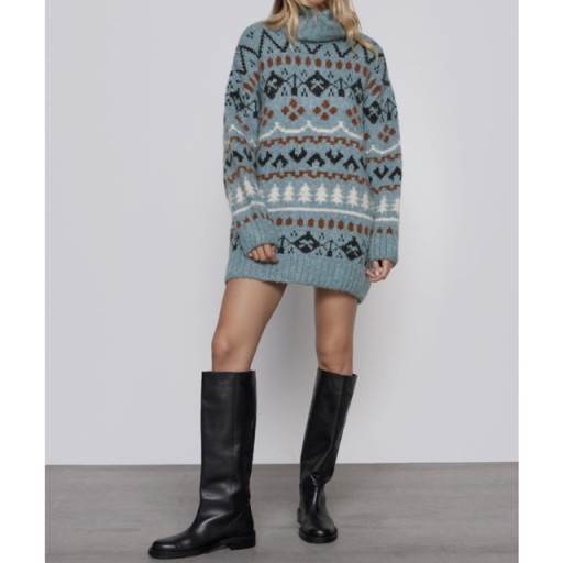 Жаккардовый свитер-туника ZARA OVERSIZE LAST M