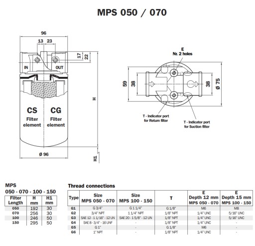 Poniższe dane bazują na układzie z olejem mineralnym o lepkości 30mm²/s (cSt) i maksymalnym spadku ciśnienia 0,4 bar dla filtrów powrotnych oraz 8 kPa dla filtrów ssawnych.