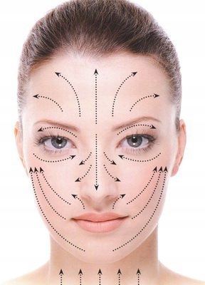 - Masować włączonym urządzeniem, prowadząc je zgodnie z ruchami antygrawitacyjnymi, stroną z wypustkami.