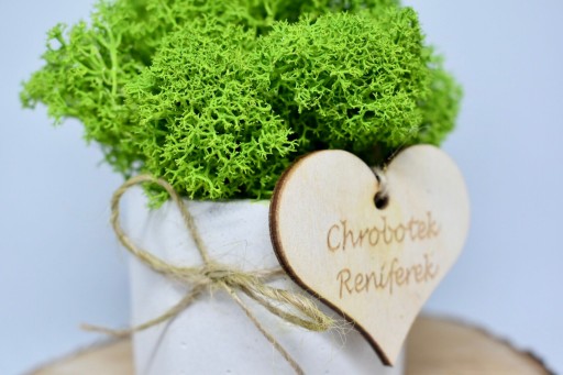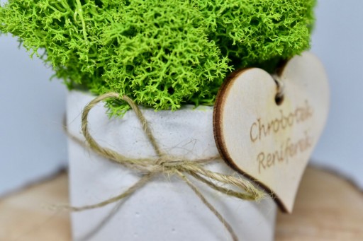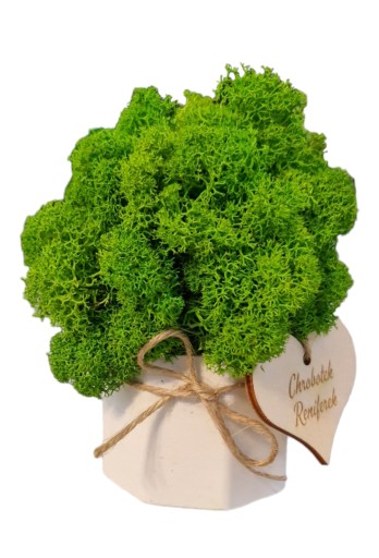 Czy wiesz, że dekoracje z mchu są całkowicie bez obsługowe? Nie wymagają przycinania, podlewania ani nawożenia. Chrobotek jest doskonałą rośliną dla alergików- ma działania antystatyczne ( nie przyciąga kurzu), oczyszcza powietrze, sprawdzi się doskonale również w pomieszczeniach bez okien. Swoją popularność mech chrobotek reniferowy zawdzięcza proekologicznym trendom.