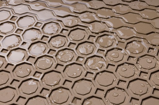 - Wierzchnia strona dywaników, wypełniona na całej powierzchni strukturą ośmiokątów (plastra miodu) została pokryta podwójną warstwą gumy.