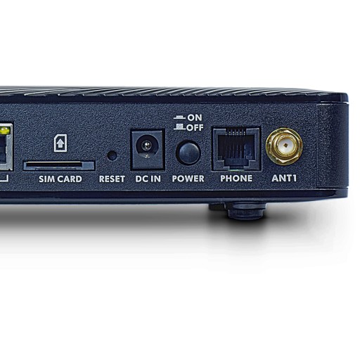 Znajdują się tu również dwa złącza antenowe typu SMA - służą one do wzmocnienia odbieranego sygnału internetu mobilnego. Pomiędzy nimi znajdziesz (od lewej):