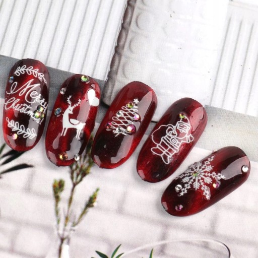 Naklejki z kolekcji Świątecznej to wspaniały wybór dla nowoczesnych Kobiet, które szukają najmodniejszych rozwiązań i szybkiej stylizacji salonowej! Atrakcyjne wzory, ciekawe faktury i niezliczona ilość możliwości. Wyraź swoją osobowość i nastrój swoim manicure. Arkusze składają się z wielu kompozycji, jesteśmy pewni, że nie będziesz mogła się zdecydować!