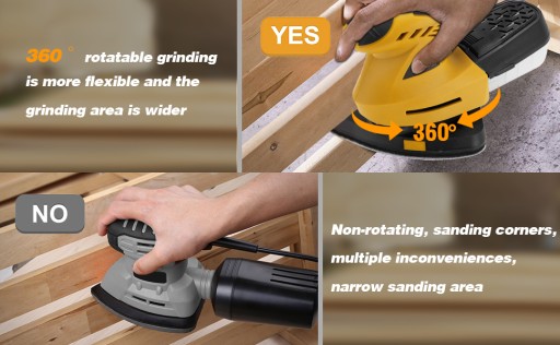 - 【OBROTOWA PODKŁADKA SZLIFIERSKA 360 °】 Wyjątkowy obrotowa stopa o 360 stopni umożliwia obracanie go o 90 stopni w lewo lub 90 stopni w prawo, idealny do szlifowania małych przestrzeni i wszelkiego rodzaju narożników bez regulacji samej maszyny. Mały rozmiar, ale szerokie zastosowanie