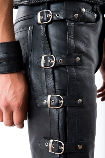 ЧУЛ 420 - КОЖАНЫЕ БРЮКИ - МЕТАЛЛИЧЕСКИЕ ПРЯЖКИ размер 36