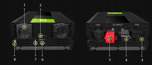 Szereg zabezpieczeń odpowiada za bezpieczną eksploatację przetwornicy chroniąc zarówno podłączone urządzenia, jak również instalację elektryczną.
