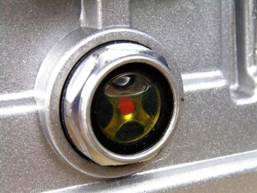 Sprężarka posiada czytelny wskaźnik poziomu oleju. Przed wysyłką każdy kompresor gratis zalewany olejem LD-100. Prawidłowy poziom oleju to zakryte 3/4 szkiełka.