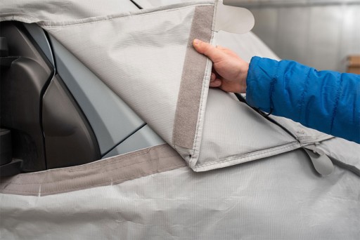 - Dolna część LUX-DUO, daje możliwość połączenia z górną częścią LUX za pomocą zintegrowanego paska rzepowego wzdłuż górnej części maty, tworząc w ten sposób kompletną izolację termiczną dla całej kabiny kierowcy