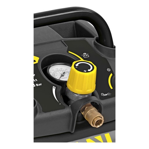 Kompaktowa i przenośna konstrukcja sprawia, że jest poręczny do przechowywania i przemieszczania. Podczas prac ze sprężonym powietrzem urządzenie spoczywa stabilnie na gumowych nóżkach.