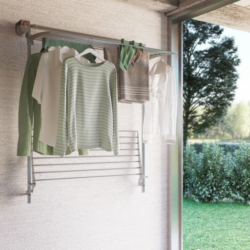 Suszarka na pranie do zamontowania na ścianie z dwoma stojakami