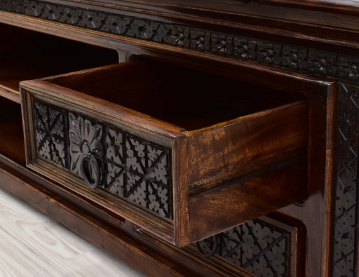 Komoda RTV kolonialna ręcznie wykonana w Indiach w 100% z litego drewna akacji indyjskiej.