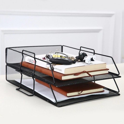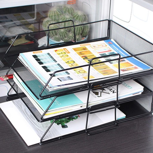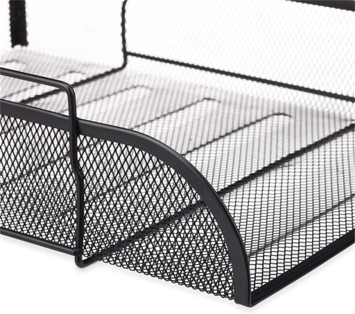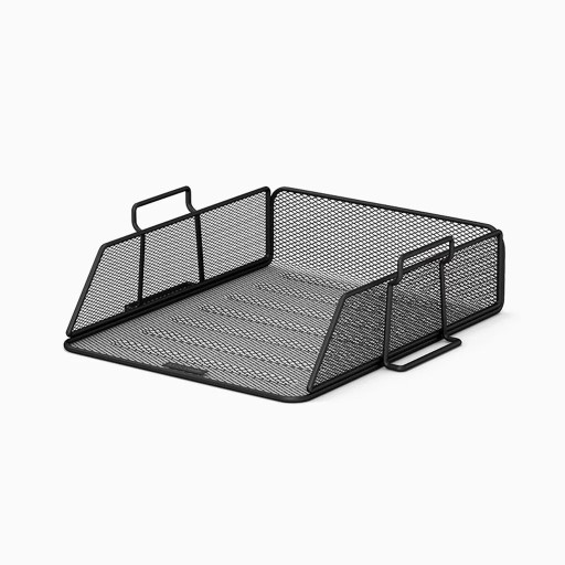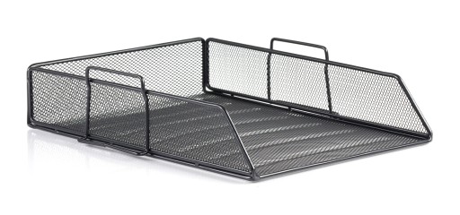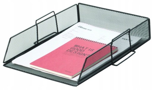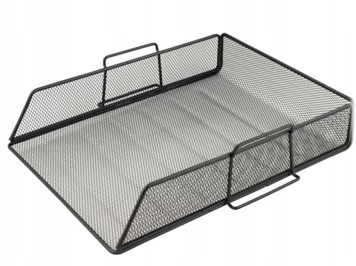 Kuweta na dokumenty wykonana z czarnej, metalowej siatki