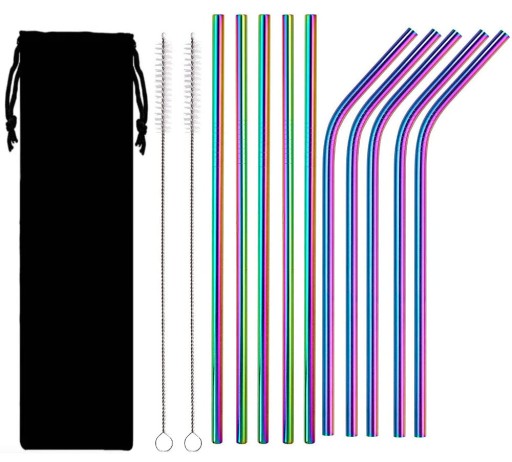 10x МНОГОРАЗОВЫЕ МЕТАЛЛИЧЕСКИЕ СОЛОМКИ RAINBOW ECO