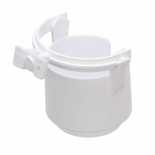 Ten uchwyt może pomieścić różne pojemniki, a nawet ma wycięcie na uchwyt kubka z uchem. Ma przegubowy wspornik do montażu powierzchniowego, który utrzymuje napoje w poziomie, aby zapobiec rozlaniu.