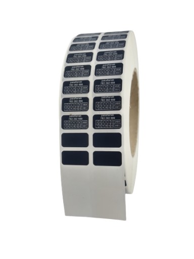 Plomby są drukowane metodą druku termotransferowego na drukarce firmy CITIZEN o rozdzielczości 300 dpi. Wykonujemy wydruk w kolorze białym.