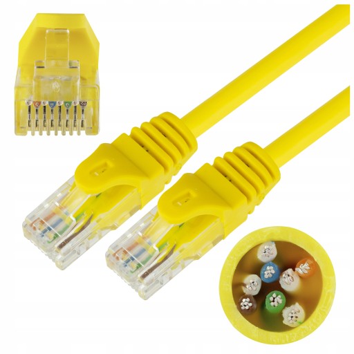 Przewód RJ45/RJ45 przeznaczony do wykonywania połączeń krosowych w punktach dystrybucyjnych oraz połączeń gniazda abonenckiego z urządzeniami sieciowymi takimi jak switch, router lub bezpośrednio z kartą sieciową komputera.