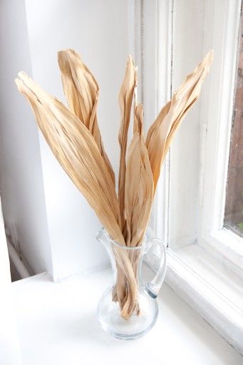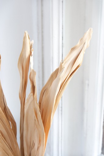 Naturalnie suszony LIŚĆ KUKURYDZY w kolorze beżowym. Jest trwały, dzięki czemu może latami służyć jako autentyczna dekoracja wnętrza.