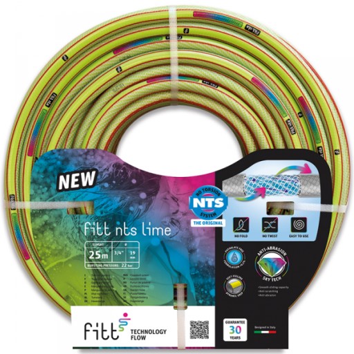 Dzięki specjalnej i oryginalnej siatce NTS, FITT jest wężem zapewniającym doskonałą ciągliwość, zapobiegając powstawaniu pętli i skręceń, zapewniając stały przepływ wody. Technologia SKY TECH zwiększa odporność na przecięcia i otarcia oraz sprawia, że wąż jest wyjątkowo gładki i łatwy w użyciu, umożliwiając przesuwanie go na wszystkich powierzchniach, również w narożach. Wąż nie zawierający ftalanów jest zgodny z najbardziej rygorystycznymi normami bezpieczeństwa dotyczącymi materiałów. Wąż ogrodowy o nowoczesnym i oryginalnym, limonkowym kolorze