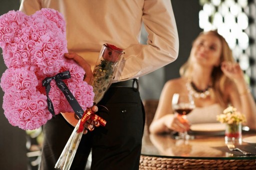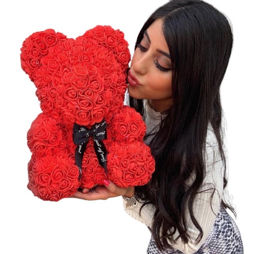 МИШКА С РОЗАМИ ЖЕНСКИЙ ДЕНЬ ЦВЕТЫ РОЗА + УПАКОВКА 25 см