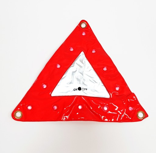 TRÓJKĄTNA MATA OSTRZEGAWCZA LED jest wykonana z odblaskowej tkaniny PCV. Zasilana przez trzy baterie AA jest w stanie funkcjonować nawet dłużej niż 18 godzin. Jest doskonale widoczna – nawet na ponad 200 metrów – dzięki migającym diodom. Produkt jest niezwykle mobilny – dzięki niewielkim rozmiarom – 36 cm x 36 cm oraz wadze, bez trudu można go zwinąć i przetransportować w inne miejsce. Zainstalowane magnesy oraz otwory wzdłuż krawędzi – sprawiają, że matę można bez trudu mocować zarówno na karoserii samochodu, jak i w dowolnym miejscu np. przy pomocy liny. Mata jest trwała, odporna na zniszczenie i wodoodporna. Może być swobodnie używana przez 3 lata.