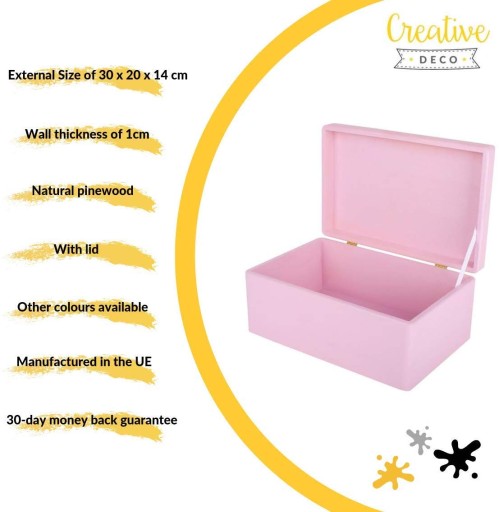 Pudełko z drewna 30 x 20 x 14 cm do dekoracji, decoupage, na zabawki, narzędzia, dokumenty