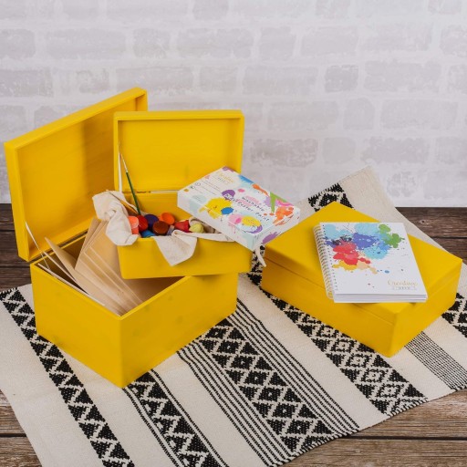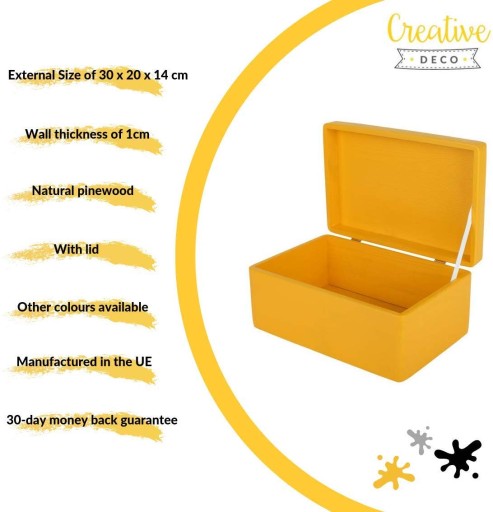 Желтый деревянный ящик с крышкой 30х20х14 см.