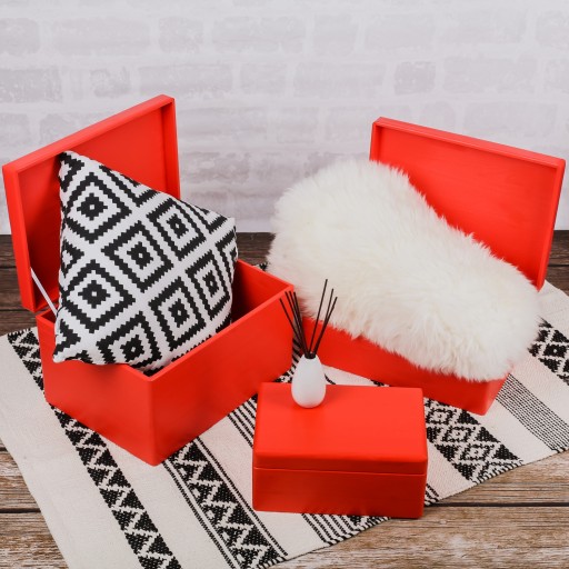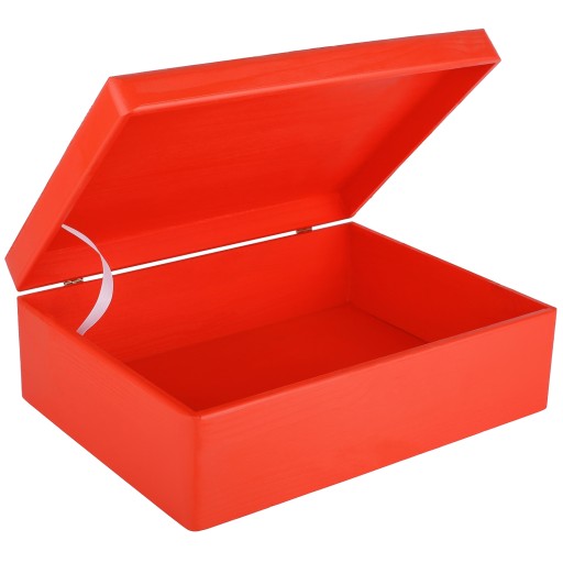 Красная деревянная коробка с крышкой, 40х30х14 см.