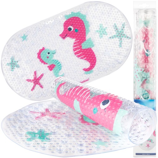 Praktyczna, antypoślizgowa mata do kąpieli LOVE&SEA z przyssawkami przeznaczona do użytku w wanienkach dziecięcych, dużych wannach i kabinach prysznicowych. Zapobiega poślizgnięciu się dziecka podczas kąpieli. Wykonana z wysokiej jakości gumy. Atrakcyjny wzór na macie zachęci dziecko do kąpieli.