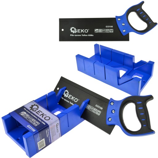 Wysokiej jakości uniwersalna piła ręczna 300mm renomowanej marki GEKO. Piła w zestawie ze skrzynką uciosową (korytkiem) przeznaczoną do precyzyjnych cięć pod kątem 45° oraz 90°.