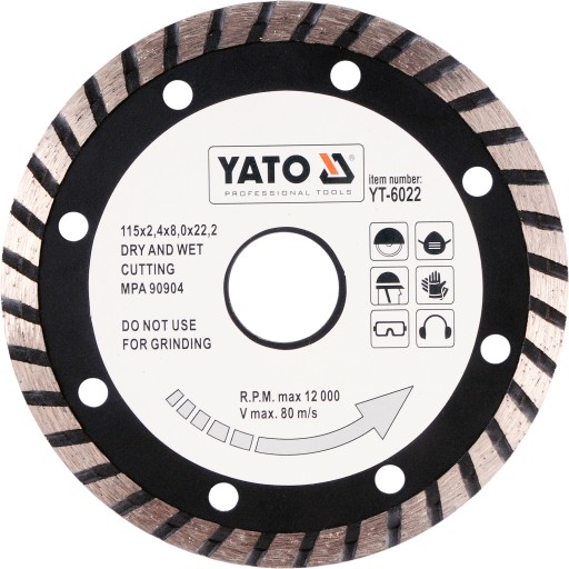 Przeznaczona do pracy „na mokro lub na sucho". Polecana do cięcia betonu utwardzonego, betonu zbrojonego, cegły, granitu, muru, kamienia, piaskowca. Zalecane obroty ok. 12000 obr./min
