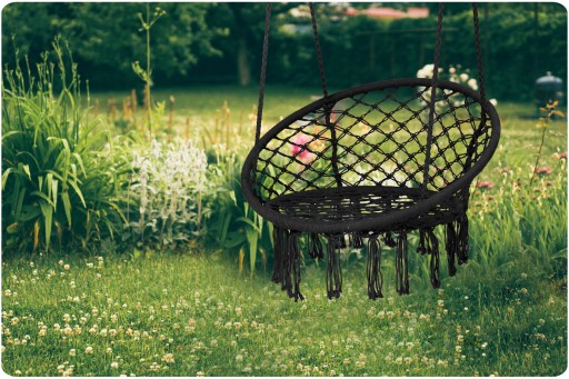Wygodny fotel wiszący w nowoczesnym i będącym na czasie stylu boho.