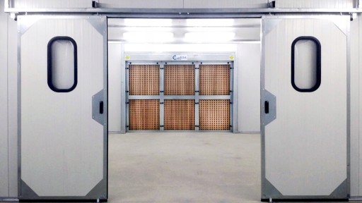 Strumień powietrza zmienia swój kierunek, co powoduje oddzielenie się cząstek farby od strumienia powietrza i zdeponowanie ich w kieszeniach filtra dzięki specjalnie zaprojektowanej strukturze harmonijkowej filtra