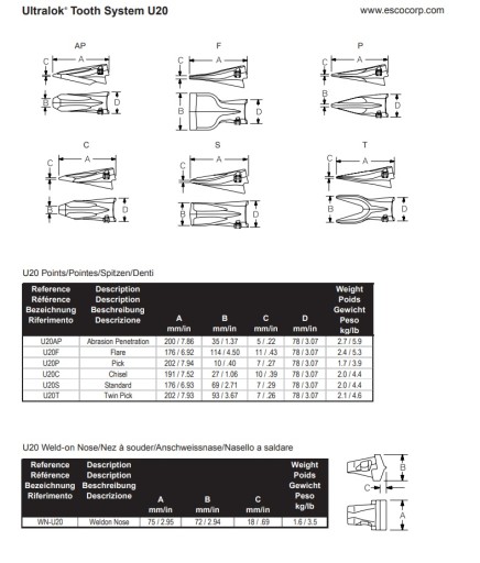 Jedyny na świecie system dwuczęściowy - ząb zintegrowany z zawleczką, mocny stop opracowany przez ESCO