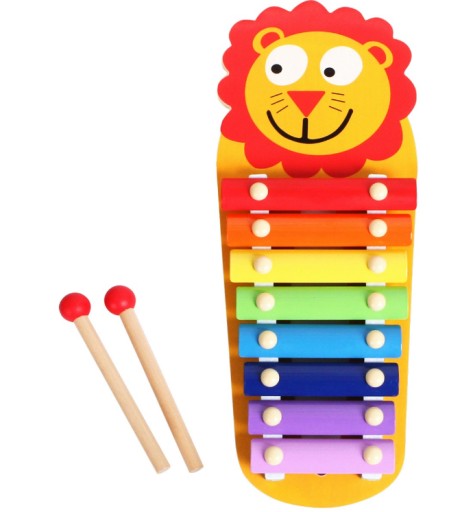 Pierwsze cymbałki dla małego miłośnika muzyki. Mają praktyczny kształt ułatwiający chwytanie oraz rozszerzoną paletę kolorów. Dzięki nim maluch pozna arkana sztuki muzycznej i nauczy się odróżniania nowych dźwięków oraz wyczucia rytmu. Sympatyczna głowa lwa przyniesie maluchowi dodatkowa radość z zabawy.