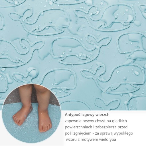 - Od spodu mata posiada bardzo gęsto ułożone przyssawki. Dokładnie 101 przyssawek - tak aby mata nie ślizgała się razem z maluszkiem