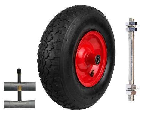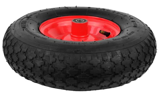 Koło do taczki o maksymalnym obciążeniu do 136 kg. Wytrzymała metalowa felga malowana proszkowo zapewnia podwyższoną stabilność. Całość wykonana z wysokiej jakości materiałów. Bieżnik z wzorkiem, idealny do nawierzchni: