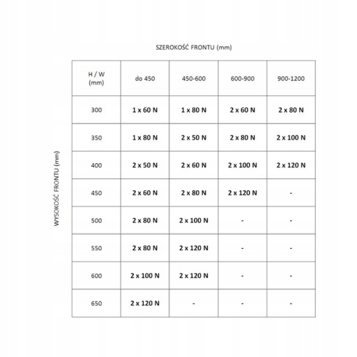 Do każdego podnośnika dołączone są elementy mocujące. Do prawidłowego funkcjonowania podnośnika zaleca się montaż dwóch podnośników na jedną klapę, po obu stronach frontu w celu równomiernego podnoszenia.