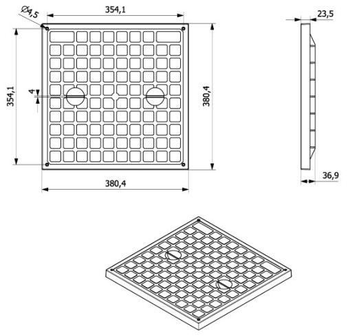 Dekiel z ramą do studzienki odgromowej, gruntowej, kontrolno-pomiarowa, 40x40 cm, RAL 7035 - szara.