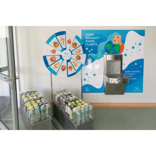 Zestaw składa się z jednego źródełka oraz ściennego dystrybutora wody kranowej. Przeznaczony wyłącznie do użytku wewnętrznego. Zapewnia dostęp do wody pitnej wszystkim spragnionym oraz umożliwia napełniania butelek, bidonów, karafek i dzbanków. Dolna misa oraz naścienny dystrybutor uruchamiane za pomocą dwóch oddzielnych samopowrotnych przycisków. Urządzenie idealne do szkół, zakładów pracy, przychodni, szpitali, czy urzędów.