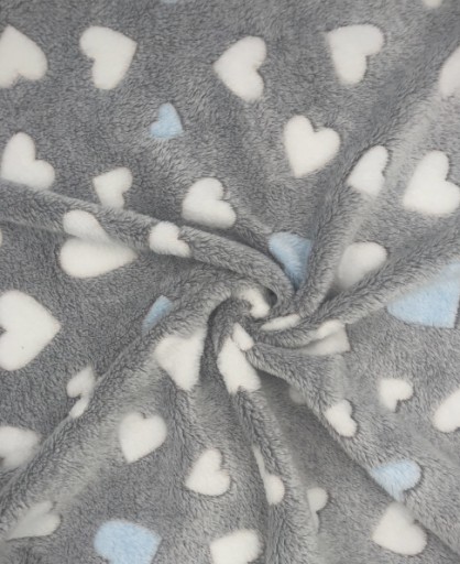 ПЛЮШЕВАЯ ТКАНЬ ФЛИС СЕРДЦЕ БЕЛЫЙ СИНИЙ