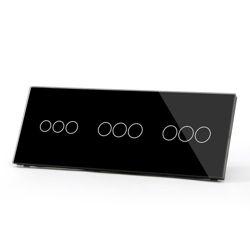Aukcja dotyczy włącznika z 9cioma przyciskami, do potrójnej puszki elektrycznej, w kolorze czarnym, z panelem ze szkła hartowanego 228mm
