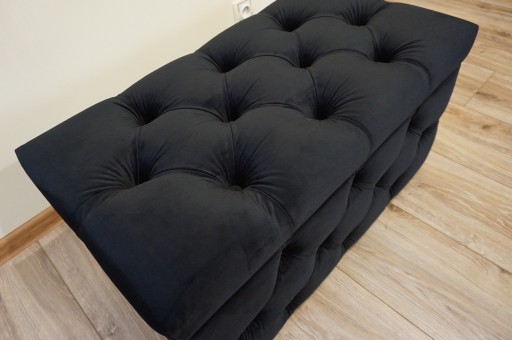 Sprzedam NOWĄ pufę-ławeczkę głęboko pikowaną guzikami, obitą ekoskórą MADRYT (odcień czarny) z pojemnikiem otwieranym na siłownikach gazowych.