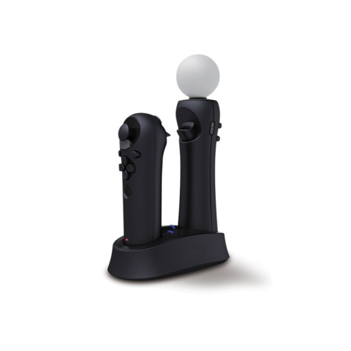 Stacja pasuje również do kontrolerów Move od PS4, jest to możliwe dzięki temu, że ładowanie odbywa się nie poprzez złącze Mini USB a przez złącze stykowe, kompatybilne z Move od PS3 i PS4.